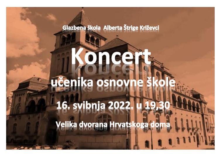Večeras, 16. svibnja održava se u velikoj dvorani Hrvatskog doma koncert učenika osnovne škole. Uživajte!