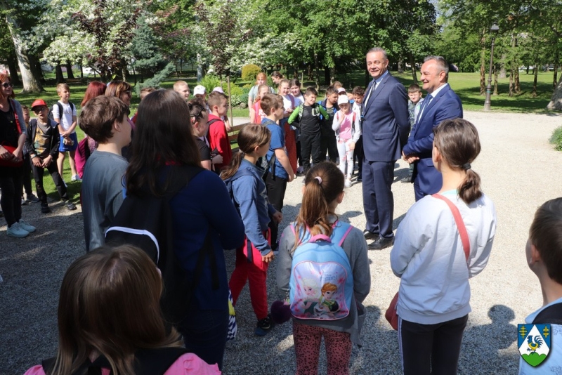 Učenici trećih i četvrtih razreda Osnovne škole Sveti Petar Orehovec, u pratnji učiteljica, u koprivničkom su se Gradskom parku družili sa županom Darkom Korenom, zamjenikom župana Ratimirom Ljubićem i pročelnicom Upravnog odjela za obrazovanje Anom Mušlek.