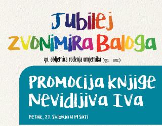 Večeras će se održati promocija jubilarnog izdanja zbirke pjesama Nevidljiva Iva Zvonimira Baloga u izdanju nakladničke kuće Katarina Zrinski