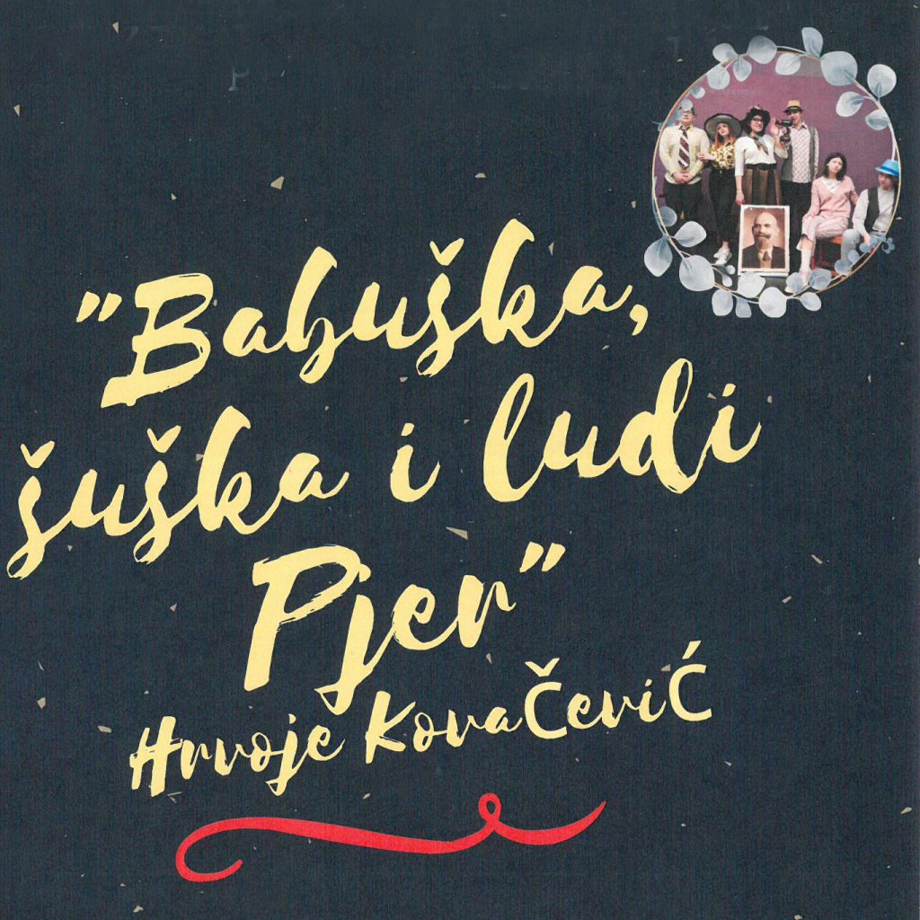 Dramska družina Kolibrići Gradske knjižnice “Franjo Marković” Križevci izvodi predstavu “Babuška, šuška i ludi Pjer” prema tekstu Hrvoja Kovačevića 5. svibnja u 17 sati u Velikoj dvorani Hrvatskog doma.