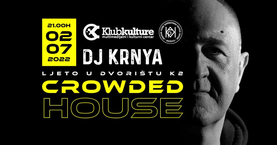 Klub kulture vas poziva na Crowded House w/ Krnya 2. srpnja 2022. s početkom u 21:00 h. Ljubitelje house i techno zvuka očekuje uvijek vrhunski DJ set našeg omiljenog križevačkog DJ-a!Križevčanin Ivan Krnjić, poznatiji kao Krnya, glazbom se bavi više od tri desetljeća. Uz zvukove njegovih ritmova generacije Križevčana proživjele su svoju mladost. Gdje god da se pojavi dobre glazbe i zabave ne nedostaje. DJingom se bavi još od 1983. g, a radijski DJ i voditelj je od 1987. g. Nastupao je diljem Hrvatske. Bio je rezident DJ u klubu Gallery u Zagrebu i Haciendi u Vodicama, radio je u Bestu, Tvornici i Aquariusu, najznačajnijim zagrebačkim klubovima, svirao je sa puno DJeva izvana, a imao je priliku upoznati i neke od svojih najvećih idola, kao što su Cristian Varela i Richie Hawtin. Godine 2021. osvojio je glavnu nagradu Ambasador u kategoriji za najbolji livestream sa svojim projektom “My vinyil stories from quarantine”.