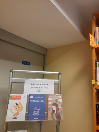 Nacionalni kviz za poticanje čitanja središnja je manifestacija Mjeseca hrvatske knjige i nosi naziv Nije lako kad si mlad jer je 2022. godina proglašena Europskom godinom mladih. Knjige uključene u program Nacionalnog kviza za poticanje čitanja izložene su na polici kraj tv-a u kutku za mlade na međukatu knjižnice.