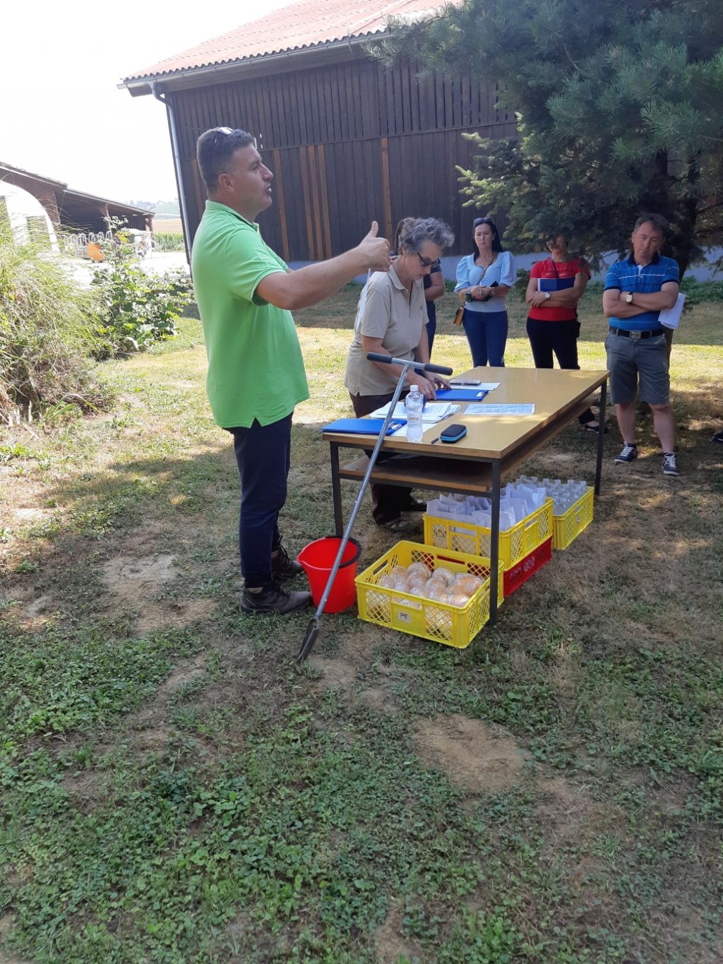 Nakon usmenog izlaganja, savjetnici su zajedno s okupljenim poljoprivrednicima krenuli na obližnje polje gdje se odvijala demonstracija izravne aplikacije goveđe gnojovke u tlo. Prije samog prikaza gnojidbe, uzeti su uzorci tla za laboratorijsku analizu. Praktični dio demonstracija gnojidbe obavili su radnici iz tvrtke PSC Ferenčak uporabom cisterne s priključnim deponatorom.