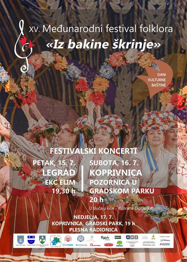 U petak, 15.srpnja u Legradu će zaplesati gosti iz Austrije te tri folklorne grupe iz Hrvatske, FD “Umag” , KUD Orljava iz Pleternice, KUD “Donji Vidovec” i KUD Stubica. Koncert će se održati u EKC Elim u 19.30.