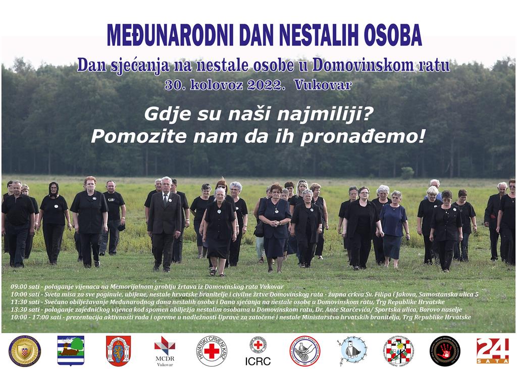 Ove godine središnji skup obilježavanja Međunarodnog dana nestalih osoba u Republici Hrvatskoj održat će se u Vukovaru, u organizaciji Saveza udruga obitelji zatočenih i nestalih hrvatskih branitelja te udruge „Vukovarske majke“, Zajednice udruga civilnih stradalnika Domovinskog rada Hrvatske i Udruge djece poginulih i nestalih hrvatskih branitelja Domovinskog rata. Pozivamo sve koji su u mogućnosti da svojom nazočnošću pruže potporu obiteljima nestalih osoba, pokažu im da u svojem traganju za istinom nisu same i da njihovi najmiliji nisu zaboravljeni.