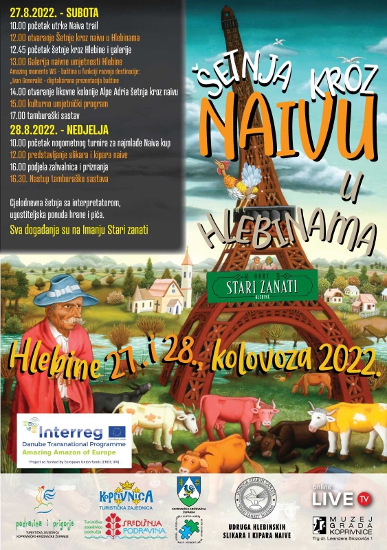 Tijekom trajanja manifestacije Šetnja kroz naivu, projekt Amazing Amazon of Europe bit će predstavljen na imanju Stari zanati u Hlebinama, a u sklopu likovne kolonije „Alpe Adria Šetnja kroz naivu“ predstavlja se „Amazing moments Hlebinska škola naivne umjetnosti“.