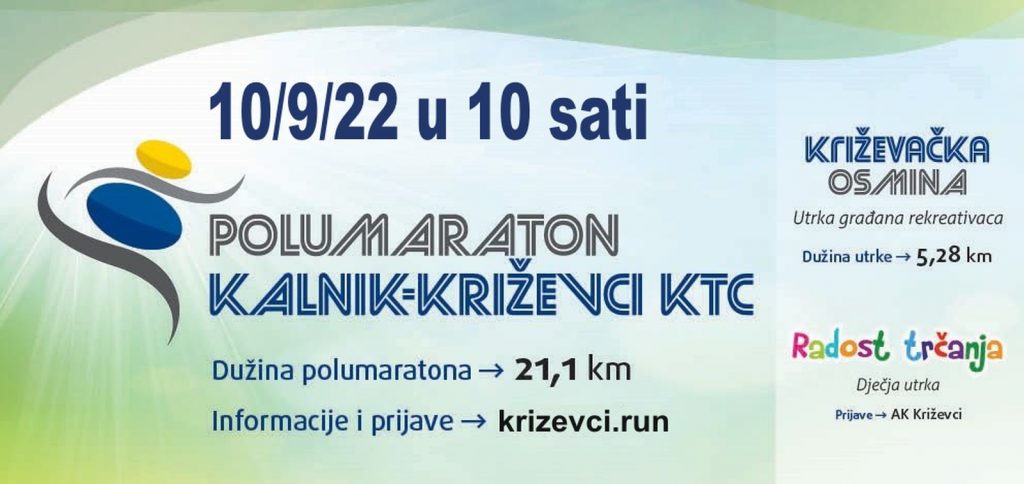 Prijave za utrke su nawww.krizevci.run, a otvorene su još samo danas, 31. kolovoza. Organizator ove sportske manifestacije je Atletski klub Križevci, suorganizator Zajednica športskih udruga Križevci, a pokrovitelji su Koprivničko-križevačka županija, Grad Križevci i Općina Kalnik.