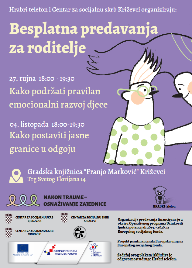 Hrabri telefon u suradnji s Udruženjem Djeca prva i Centrom za socijalnu skrb Križevci, organizira besplatna predavanja za roditelje i sve zainteresirane!