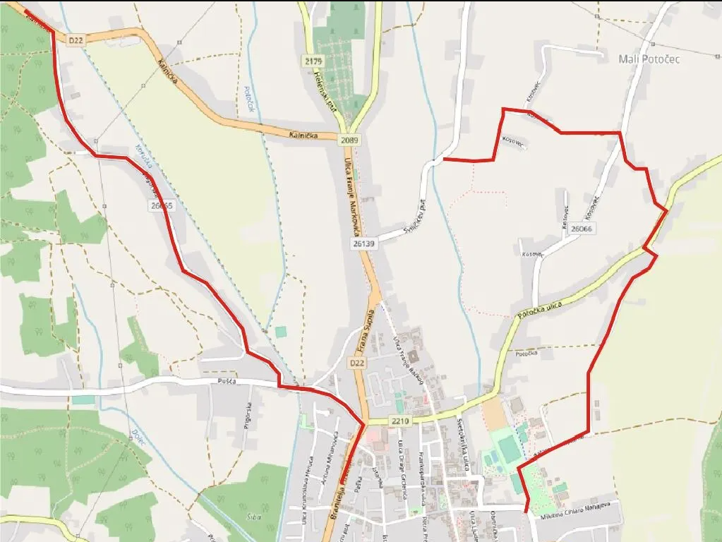 – Lokalne ceste LC 26067 – Trg bana S. Lackovića i Ulica J. Jelačića od raskrižja s Trgom  bana S. Lackovića do raskrižja s Ulicom M. C. Nehaja u Križevcima.