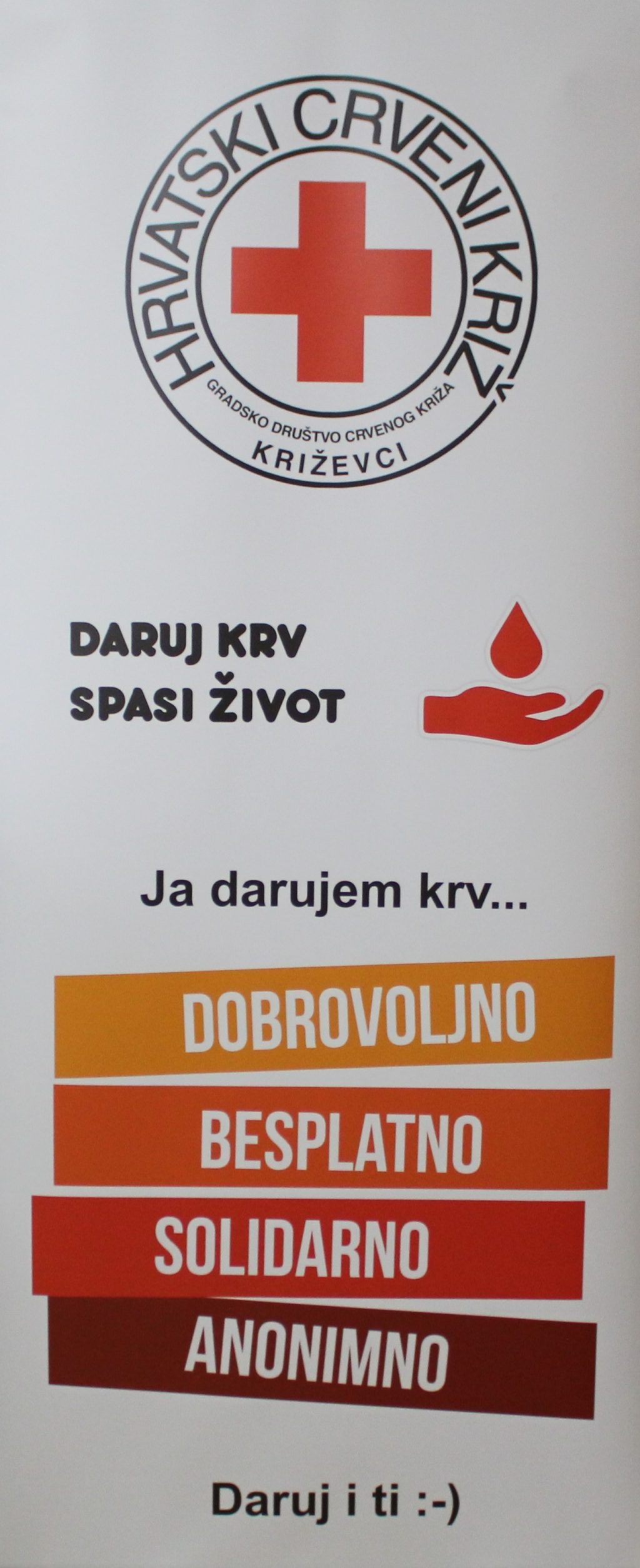Gradsko društvo Crvenog križa Križevci u suradnji sa Zavodom za transfuzijsku medicinu iz Zagreba organizira akciju prikupljanja dobrovoljnog darivanja krvi i to: