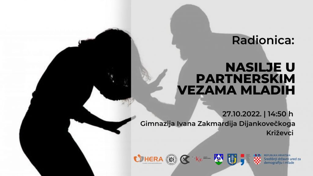 Radionica pod nazivom “Nasilje u partnerskim vezama mladih” održat će se danas, početkom u 14:50h u Gimnaziji Ivana Zakmardija Dijankovečkoga Križevci u sklopu projekta Klub kulture – multimedijalni i kulturni centar pri Središnjem državnom uredu za demografiju i mlade.
