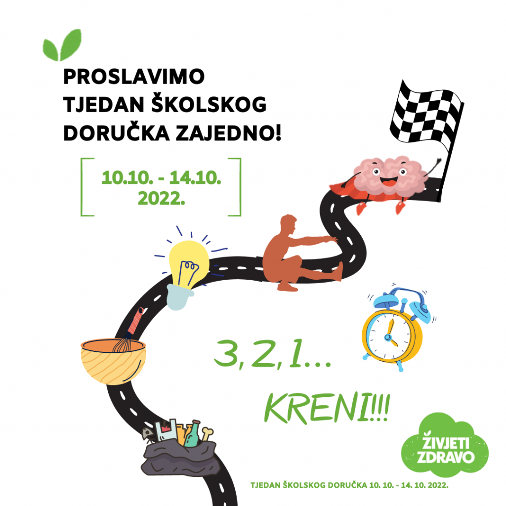 Uoči Svjetskog dana hrane slavimo treći nacionalni Tjedan školskog doručka: “3,2,1… Kreni!”.