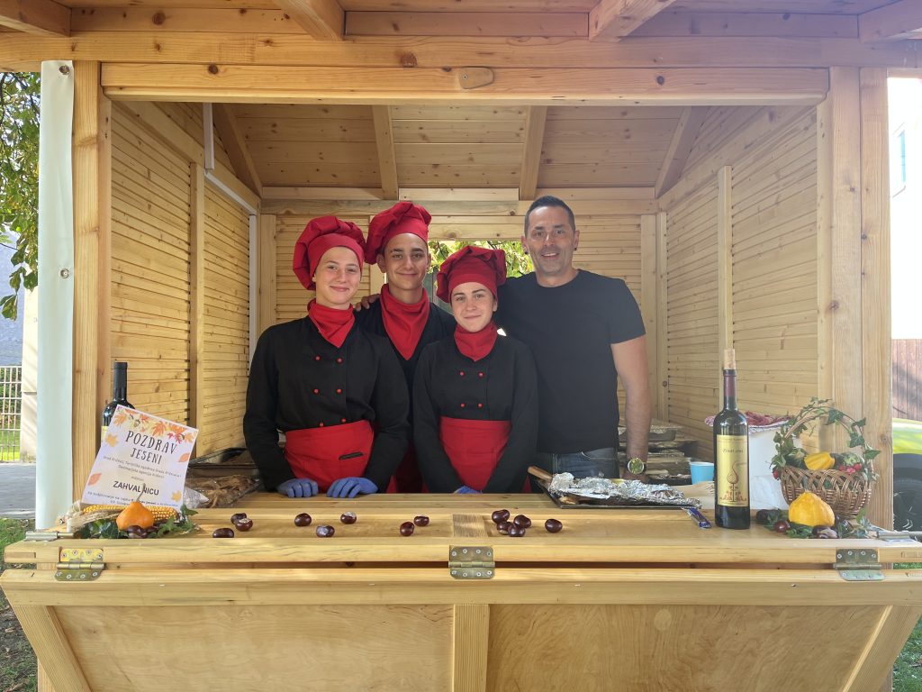 Učenici Srednje škole “Ivan Seljanec” Križevci na Nemčićevom trgu pripremili su razne poslastice za goste manifestacije “Pozdrav jeseni”. Učenici 3. razreda smjera kuhar te pomoćni kuhar i slastičar su sa svojim mentorima, profesorima Mišelom Doskočil i Markom Hasanec pripremili savijaču s jabukama, štruklje sa sirom i zeljanicu.