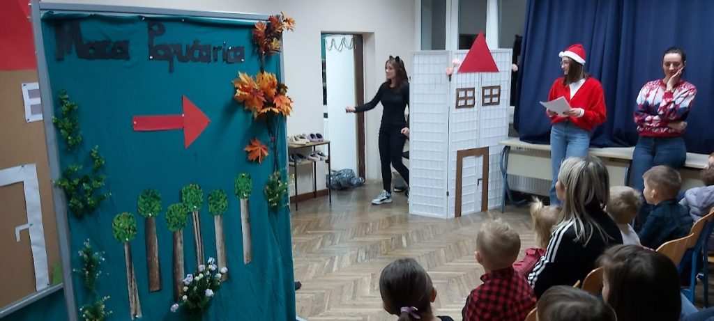 Djeca su se, poslije predstave, nastavila družiti s likovima iz bajke uz grickalice i sokove. Iako su ih pokloni zaokupili, ipak su odvojili malo vremena za Macu, djecu i Djeda Mraza. Dramska skupina već niz godina njeguje tradiciju božićnih predstava za najmlađe spajajući različite generacije i približavajući „veliku“ školu onim najmanjima.