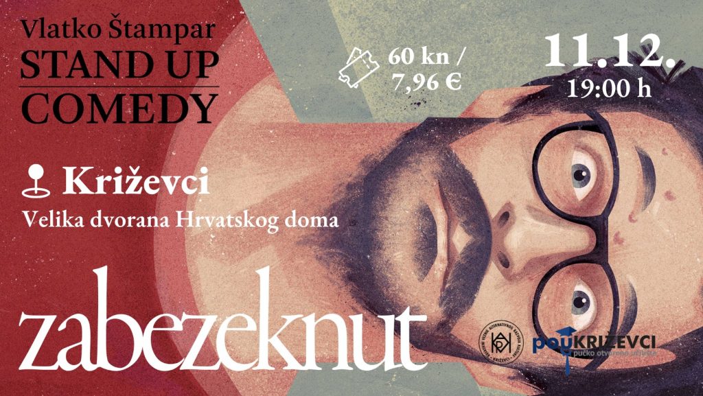 Vlatko je jedan od najboljih komičara na ovim prostorima te pod organizacijom Udruge K.V.A.R.K. i Pučkog otvorenog učilišta Križevci će predstaviti križevačkoj publici svoju komediju pod nazivom “Zabezeknut”.