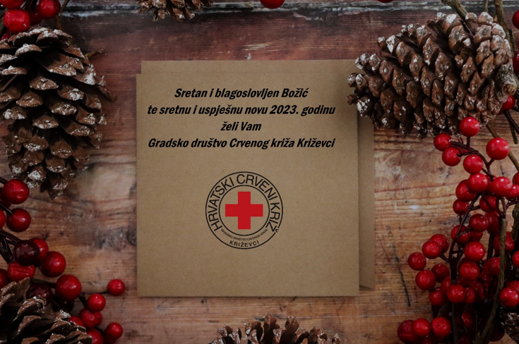 Gradsko društvo Crvenog križa Križevci svim svojim dobrovoljnim darivateljima krvi, kao i ostalim članovima, aktivistima i volonterima, te svima koji su svojim radom ili prilozima pomogli u aktivnostima Crvenog križa i svim ljudima dobre volje, želi sretne božićne blagdane i uspješnu novu 2023. godinu.