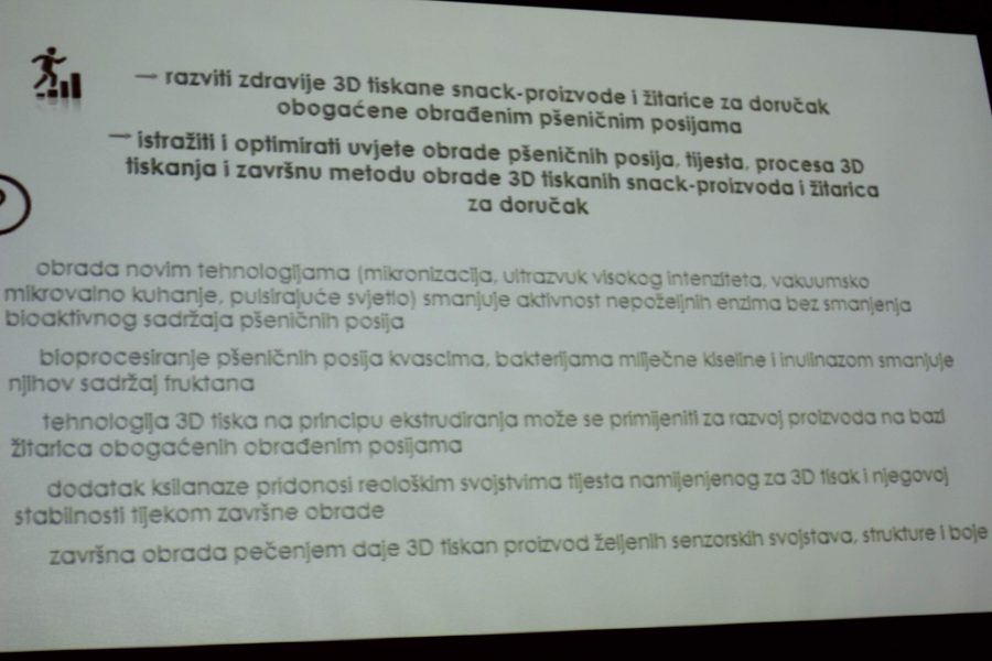 “Razvoj 3D Tiskanih proizvoda od žitarica obogaćenih obrađenim pšeničnim posijama”, naslov je održanog predavanja u multimedijskoj dvorani Gradske knjižnice Franjo Marković.