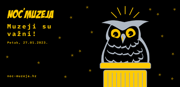 U petak 27. 01. 2023. godine u muzejima diljem Hrvatske održat će se, u organizaciji Hrvatskog muzejskog društva, Noć muzeja. Ova manifestacija pokrenuta je u Hrvatskoj 2005. godine, a u njoj je sudjelovalo šest zagrebačkih muzeja. Ubrzo prerasta u nacionalnu manifestaciju kojoj se svake godine pridružuje sve više muzeja.