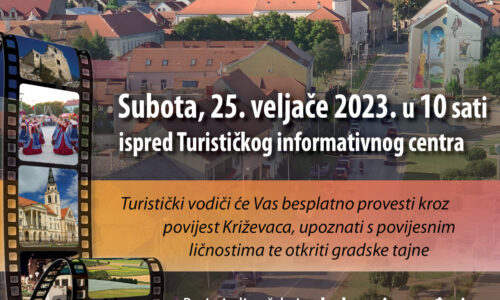 Dođite u subotu 25. veljače 2023. u 10 sati pred Turistički informativni centar u Križevcima (zgrada nekadašnje sinagoge), otkuda će naši vodiči kretati sa zanimljivim obilaskom grada. Vođenje je besplatno.