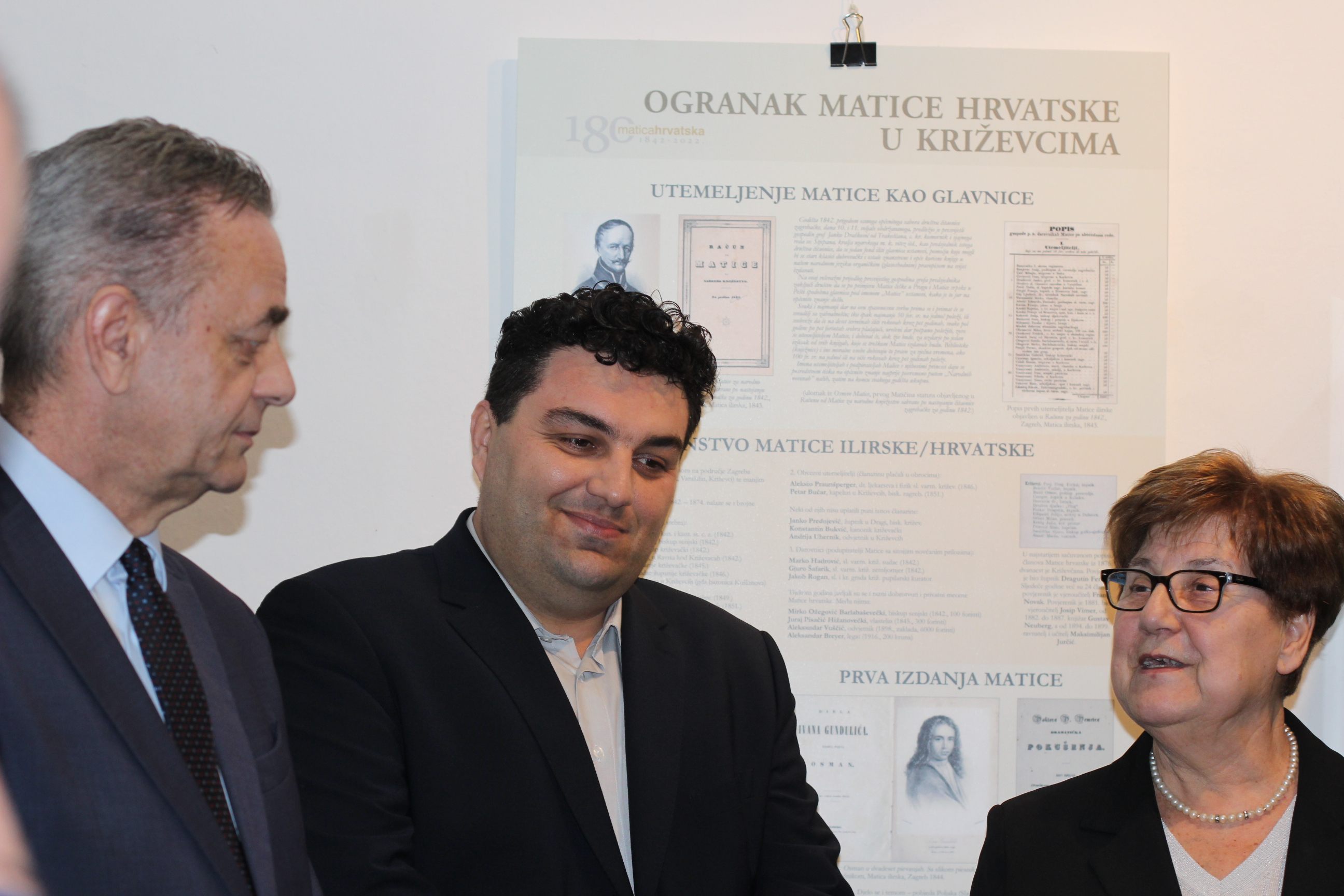 Pod pokroviteljstvom Grada Križevaca otvorena je u utorak u Likovnoj galeriji Gradskog muzeja Križevci izložba “Zajedno od 1842. Djelovanje Matice hrvatske u Križevcima”. Svečanom otvorenju prisustvovali su predsjednik Matice hrvatske Miro Gavran, glavni tajnik Matice hrvatske Marijo Dominiković, član Glavnog odbora Matice hrvatske Stjepan Sučić, gradonačelnik Križevaca Mario Rajn i župan Koprivničko-križevačke županije Darko Koren.