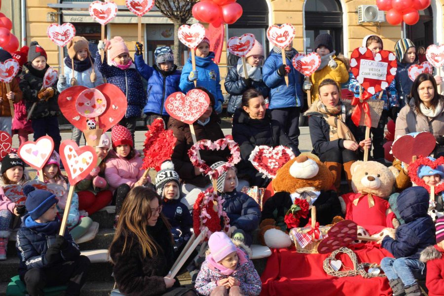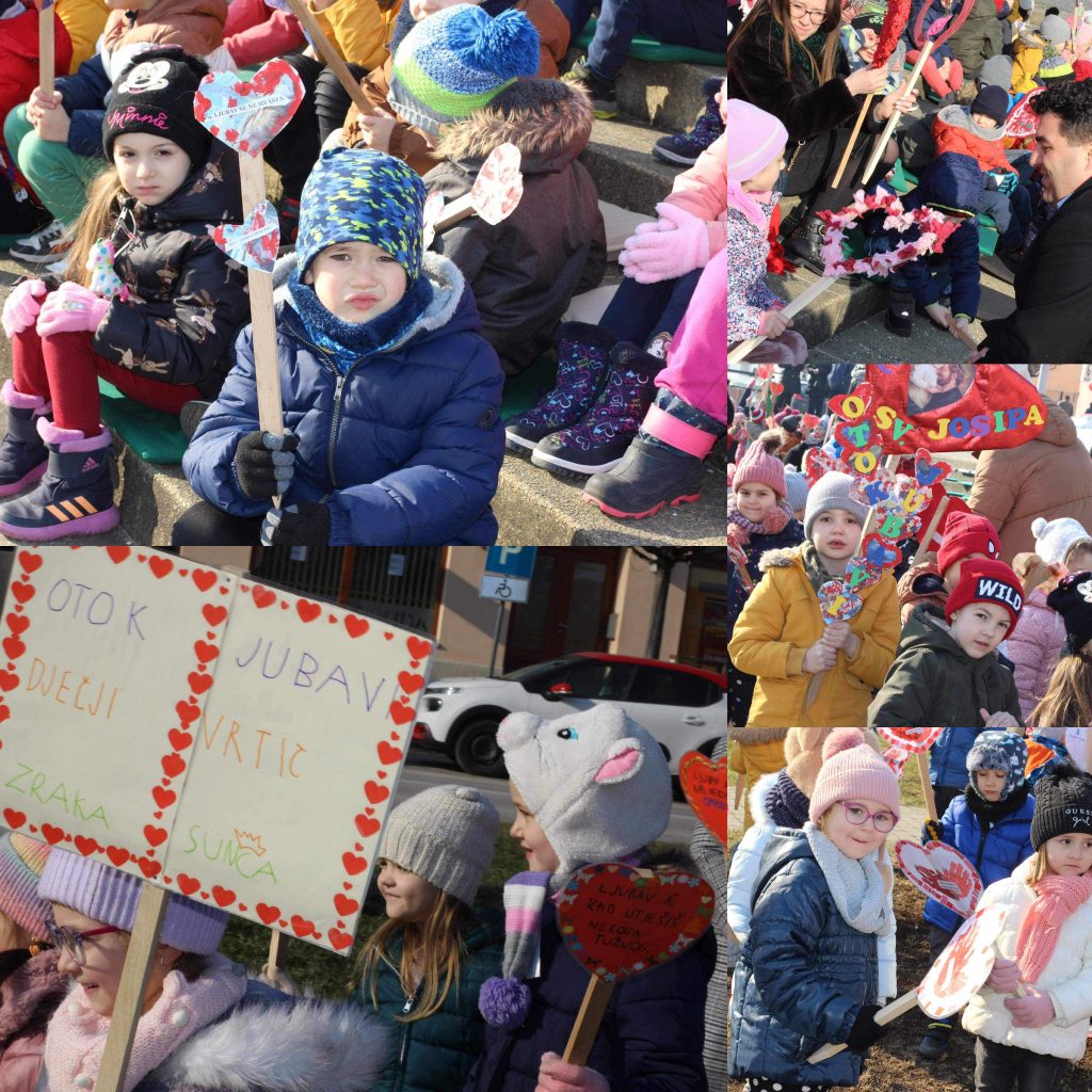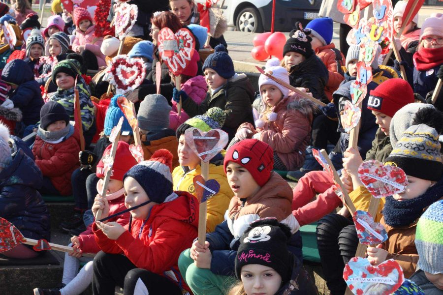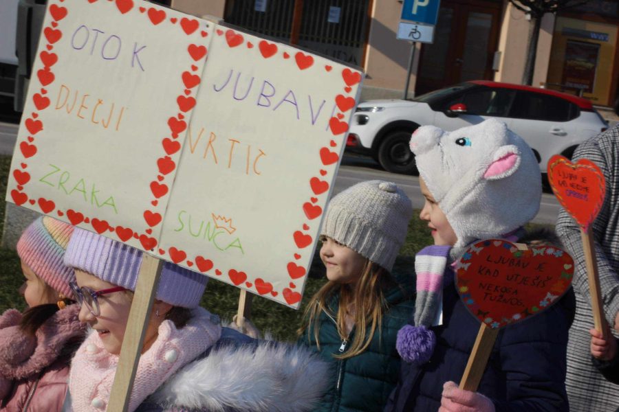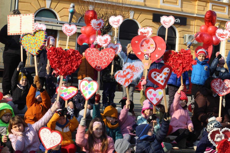 Program je započeo danas prijepodne kada su djeca COOR-a, Dječjeg vrtića Križevci, Dječjeg vrtića „Zraka sunca“, Dječjeg vrtića Svetog Josipa i Dječjeg vrtića Čarobna šuma na Strossmayerov trg donijela svoje srcolike radove i tako svojom izložbom stvorila predvalentinovski ugođaj. Izložba pod nazivom „Otok jubavi“ postavljena je na otvorenom prostoru na Strossmayerovom trgu i građani će je moći vidjeti sve do 18. veljače.