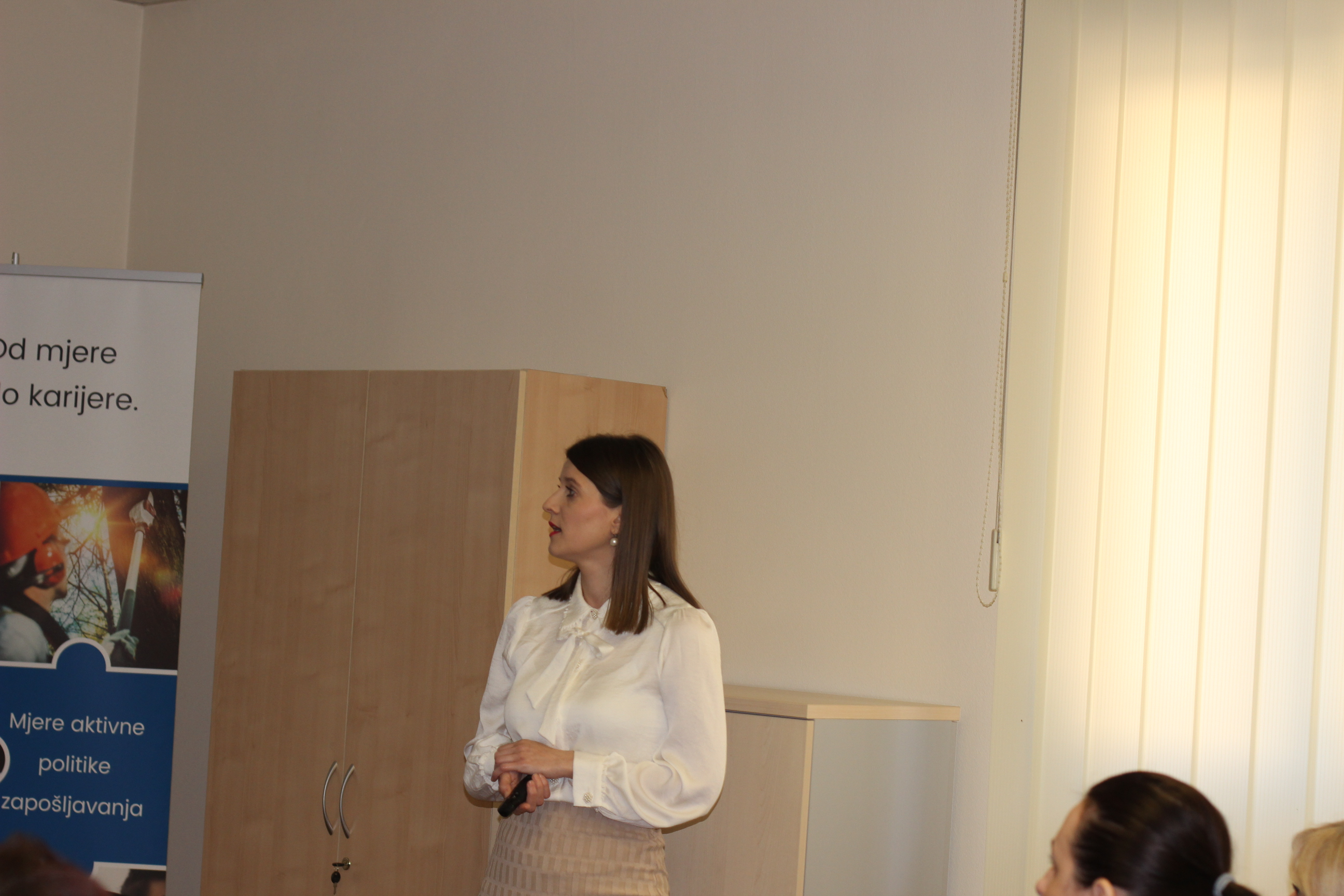 O potporama za zapošljavanje govorile su Mateja Feljak, viša stručna savjetnica u Odsjeku za rad s poslodavcima, Snježana Kosijer, rukovoditeljica Odjela za mjere aktivne politike zapošljavanja i Martina Majić Peršin, rukovoditeljica Odsjeka za profesionalno usmjeravanje i obrazovanje.
