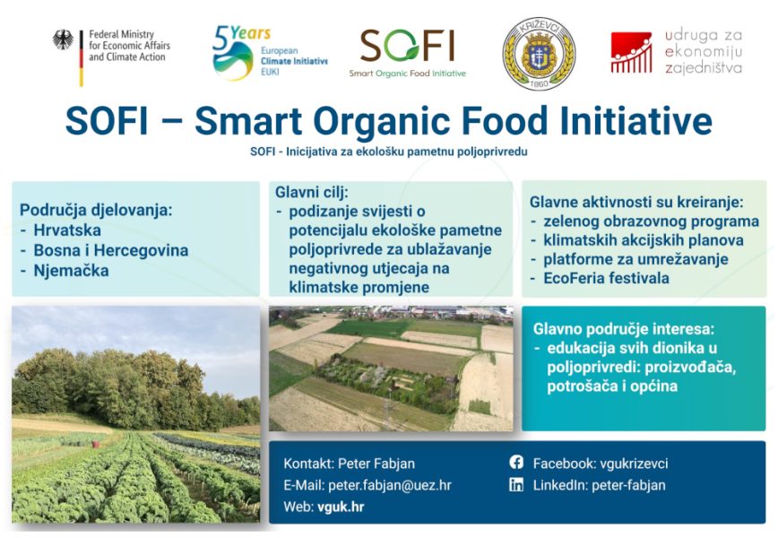 Visoko gospodarsko učilište u Križevcima (VGUK) u ulozi vodećeg partnera počelo je s provedbom projekta Smart Organic Food Initiative (SOFI) u prosincu 2022. Članovi projektnog tima ispred VGUK su dr. sc. Dijana Horvat, dr. sc. Silvije Jerčinović, dr. sc. Sandra Kantar, dr. sc. Kristina Svržnjak i Marina Topalović, mag. oec. Partneri na projektu su Udruga za Ekonomiju Zajedništva (Križevci, Hrvatska), Središte za cjeloživotno učenje (Travnik, Bosna i Hercegovina) te udruga Starkmacher (Mannheim, Njemačka).