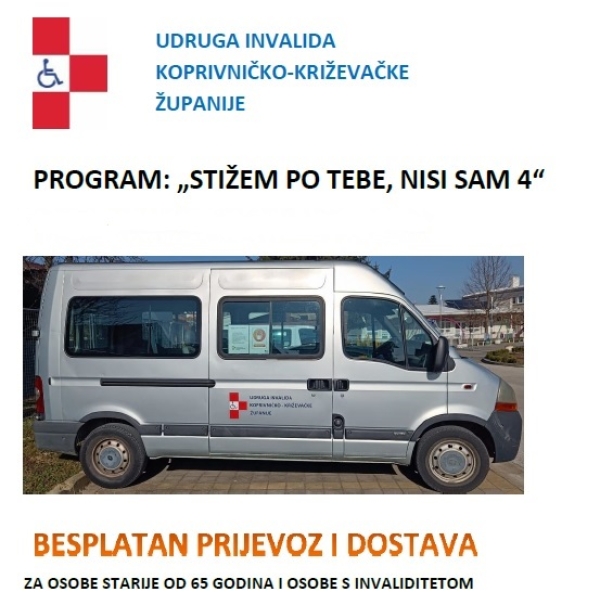Ministarstvo rada, mirovinskoga sustava, obitelji i socijalne politike Udruzi invalida Koprivničko-križevačke županije odobrilo je program besplatnog prijevoza i dostave „Stižem po tebe, nisi sam 4“ koji je namijenjen starijim osobama i osobama s invaliditetom. Partner na projektu je Koprivničko-križevačka županija, uz općine Drnje, Đelekovec, Gola, Hlebine, Legrad, Koprivnički Bregi, Koprivnički Ivanec, Novigrad Podravski, Peteranec, Sokolovac i Virje.