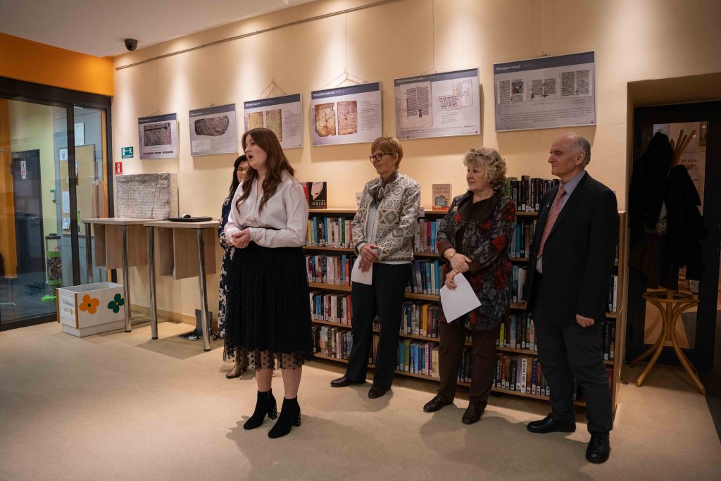 O izložbi su govorili Darko Žubrinić, predsjednik Društva prijatelja glagoljice, Mirna Lipovac, tajnica društva prijatelja glagoljice i Martina Valec-Rebić, voditeljica Križevačkih glagoljaša, a pozdravne riječi uputila je i ravnateljica Knjižnice Marjana Janeš-Žulj.