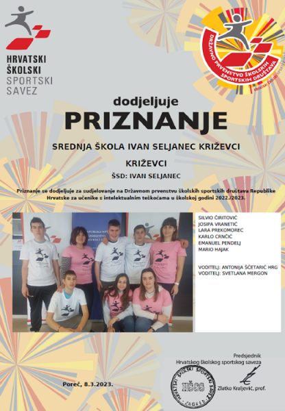Na Državnom prvenstvo za učenike s intelektualnim teškoćama koje se održalo u Poreču od 6. do 8. ožujka 2023. učenici Srednje škole “Ivan Seljanec” ostvarili su lijepe rezultate.