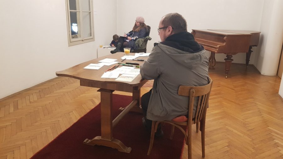 Ida Loher pozvala je posjetitelje da pogledaju kroz prozor i zabilježe neku misao crtežom ili na neki drugi način.