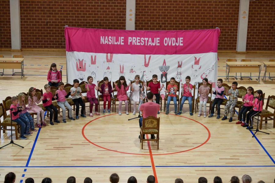 Predavanju je prethodila priredba, koja je održana u sportskoj dvorani, gdje je ravnatelj škole Danijel Domišljanović zahvalio svim sudionicima, učenicima, djelatnicima i gostima na sudjelovanju i mnogobrojnim aktivnostima kojima je obilježen ovaj dan i tako poslana poruka iz ove škole: NASILJE PRESTAJE OVDJE!