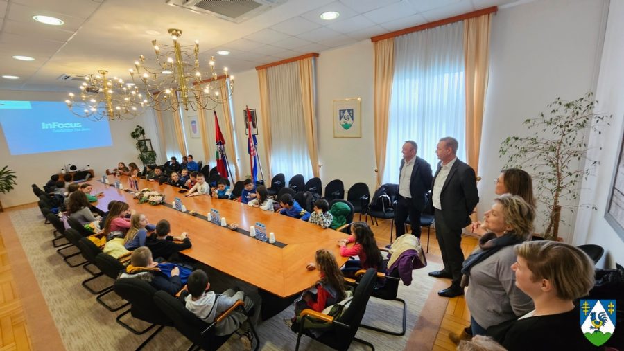 Školarci iz Osnovne škole Mihovil Pavlek Miškina Đelekovec i Područne škole Imbriovec danas su u pratnji svojih nastavnica posjetili Županijsku upravu, gdje su ih dočekali župan Darko Koren, zamjenik župana Ratimir Ljubić i pročelnica Melita Ivančić.