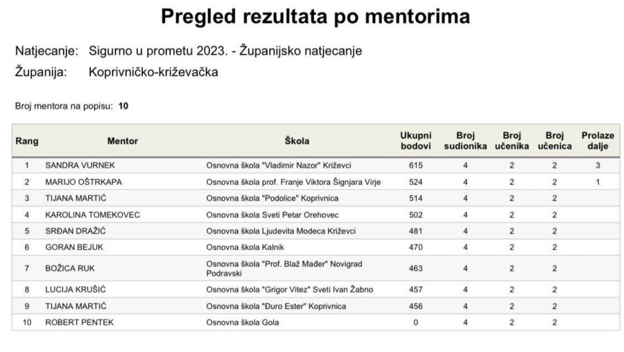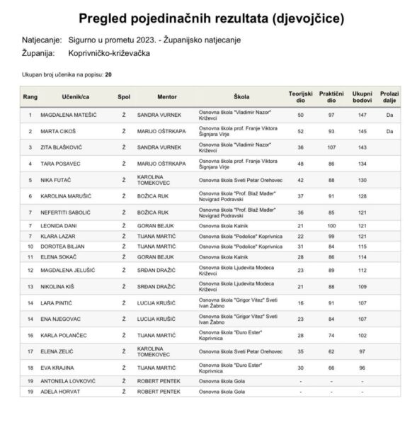 Učenici Osnovne škole “Vladimir Nazor” Križevci osvojili 1. mjesto na županijskom natjecanju “Sigurno u prometu”