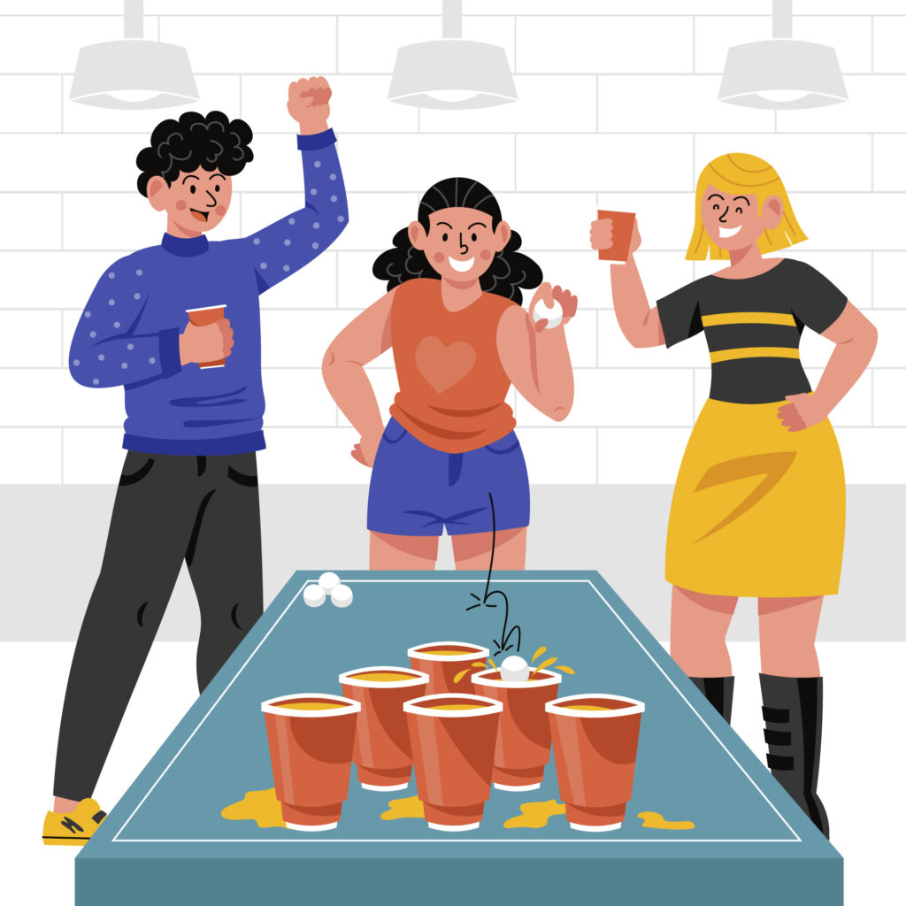 Beer Pong, također poznat kao Beirut, igra je u kojoj igrači bacaju ping pong lopticu preko stola s namjerom da loptica padne u čašu piva na drugom kraju stola. Igra se obično sastoji od suprotstavljenih timova od dva ili više igrača po strani sa 6 ili 10 čaša postavljenih u formaciju trokuta sa svake strane. Svaki tim zatim naizmjence pokušava ubaciti ping pong loptice u protivničke čaše. Ako loptica padne u čašu, drugi tim konzumira sadržaj te čaše i ona se zatim uklanja sa stola. Prvi tim koji eliminira sve protivničke čaše je pobjednik.