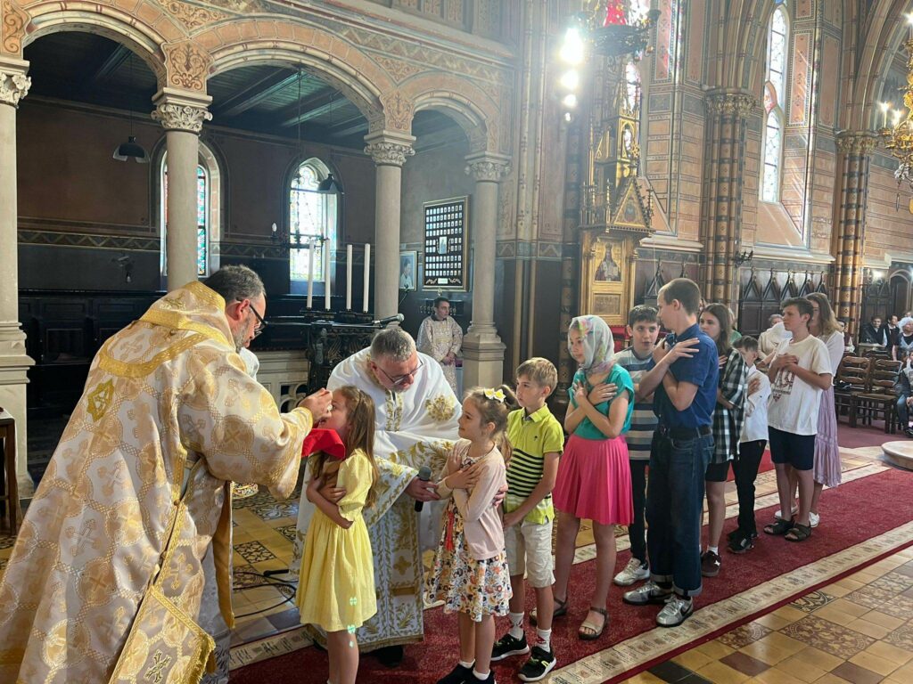 Na svetkovinu Presvete Euharistije, u četvrtak 8. lipnja 2023., u grkokatoličkoj katedrali Presvete Trojice, sedamnaestero djece – od kojih su većina izbjeglice iz Ukrajine, pristupilo je prvi puta svetoj Tajni ispovijedi i primilo prvu pričest na svečani način. Naime, u bizantsko-katoličkom obredu djeca se odmah pričešćuju prigodom krštenja i miropomazanja, a sada povodom prve ispovijedi primili su i na svečani način pričest. Svečanu liturgiju sv. Ivana Zlatoustog, u zajedništvu s više svećenika, služio je križevački vladika Milan Stipić, a pjevali su pjevači Katedralnog zbora. Svetu euharistiju primila su ukrajinska djeca koja su kao izbjeglice smješteni u domu u Vrbovcu te djeca iz dječjeg doma kojega vodi Križevačka eparhija pod nazivom ”Paviljon sv. Marka Križevčanina” u Križevcima, a vladika Stipić ih je osobno pripremao.