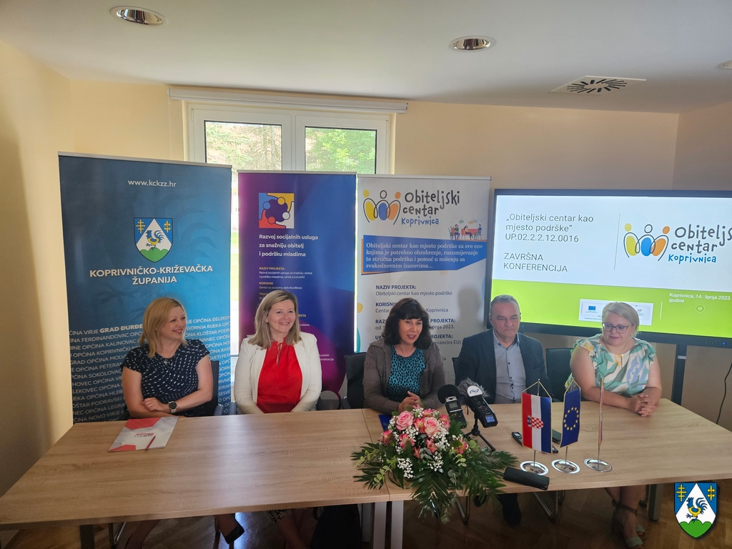 U prostorima nove zgrade Obiteljskog centra – Područne službe Koprivničko-križevačke danas su održane završne konferencije projekata „Obiteljski centar kao mjesto podrške“ i „Razvoj socijalnih usluga za snažniju obitelj i podršku mladima“. Konferenciji su ispred Koprivničko-križevačke županije prisustvovali zamjenik župana Ratimir Ljubić i pročelnica Maja Blažek.