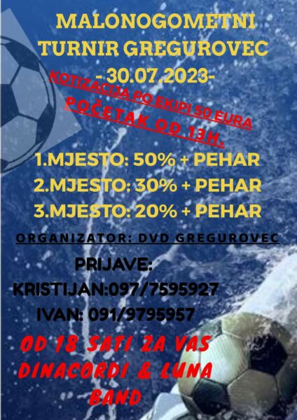 U nedjelju, 30. srpnja održat će se malonogometni turnir i zabava uz grupu Dinacordi-Luna band.