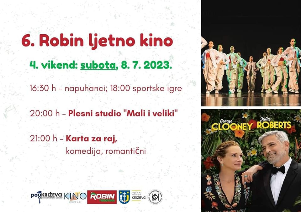 Nastupit će Plesni studio Mali i veliki, a u 21 sat počinje romantična komedija – Karta za raj.