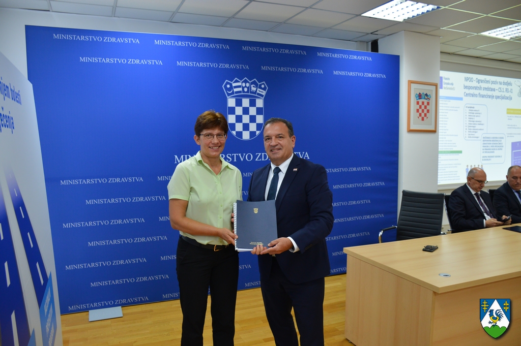 U Ministarstvu zdravstva održana je svečanost na kojoj su uručeni ugovori o dodjeli bespovratnih sredstava za uspješne prijavitelje u okviru ograničenog poziva na dodjelu bespovratnih sredstava: „C5.1.R3-11 Centralno financiranje specijalizacija“ koji se financira sredstvima u okviru Nacionalnog plana oporavka i otpornosti 2021.-2026. godine.