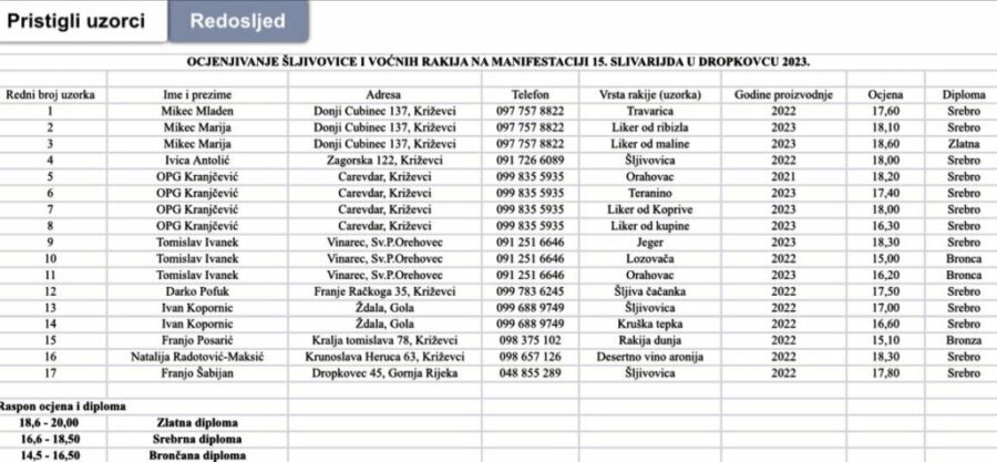 Evo tko je osvojio plakete za najbolje šljivovice i rakije na 15. Slivarijadi