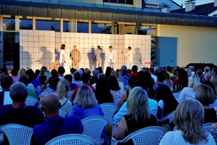 Mirna Medaković Stepinac, Goran Koši, Jan Kerekeš, Ljubomir Kerekeš, Darko Janeš i Draško Zidar, na tekst i pod redateljskom palicom Ljubomira Kerekeša, svojom maestralnom igrom oduševili su đurđevačku publiku i pokazali kako se na neuropsihijatrijskom odjelu radi igrokaz, koliko se može napredovali kroz terapije i kako kreativno provoditi vrijeme. Njihova neobična komunikacija kao i tematska nepovezanost u brojnim trenucima dovodila je do eskalacije odnosa među pacijentima, a time i nasmijala publiku do suza.