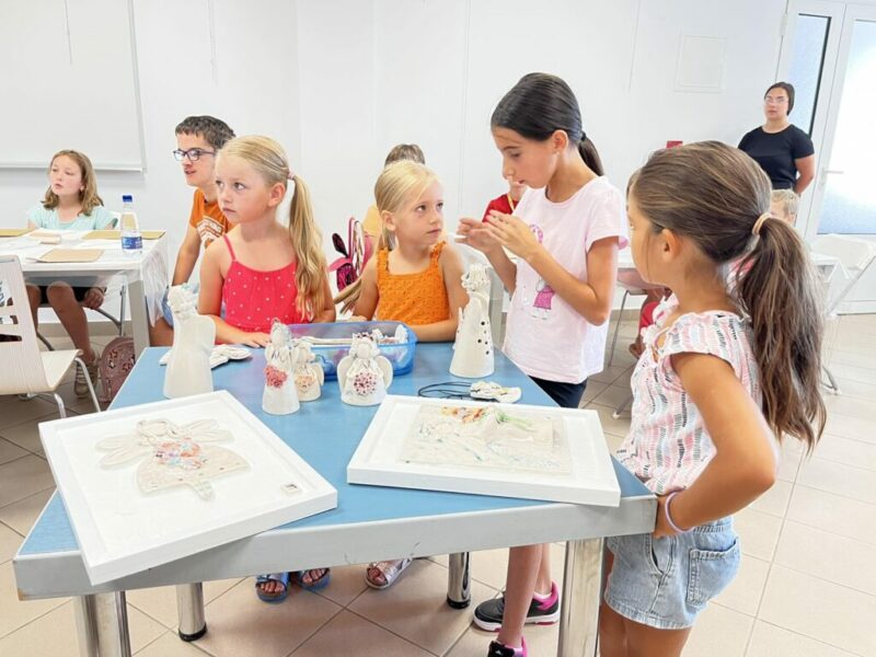 U praktičnom dijelu radionice djeca su oblikovala male anđele, koje će zatim dobro posušiti i potom oslikati. U izražavanju kreativnosti, ali i organizaciji i provođenju same radionice djeci su pomagali i mladi volonteri – Blažica, Ana Marija, Klara, Helena i Jakov.