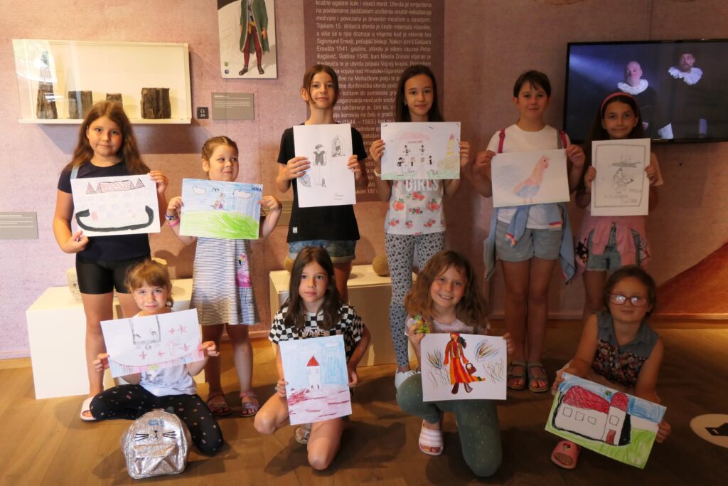 Ovaj je tjedan Muzej Grada Đurđevca otvorio svoja vrata kako bi mladi sudionici ljetne družionice istražili sve sadržaje unutar zidina te upoznali kulturnu baštinu našega kraja. Tako su djeca razgledala sve izložbe koje su trenutno postavljene u galerijskim prostorima Staroga grada – od inozemne izložbe Svjetla Moulin Rougea francuskog umjetnika Henrija de Toulouse-Lautreca i Interpretacijskog centra Picokijade, pa sve do aktualne izložbe Bicikli akademika Zlatana Vrkljana i dokumentarističke izložbe Ono što pripada biciklu iz privatne zbirke Hloušek. Upoznajući sadržaje muzeja, djeca su uočila zanimljive detalje koje su potom prenijela na papir. Mali su umjetnici korištenjem bojica, flomastera i pastela crtali motive poput pijetla, narodne nošnje, utvrde i motiva s litografija Toulouse-Lautreca.