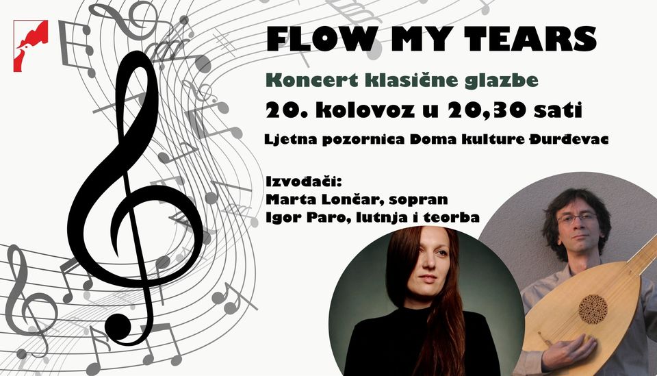 Program zajedničkog klasičnog koncerta naziva Flow My Tears dvoje talentiranih glazbenika sastoji se od pjesama za lutnju i glas napisanih i izvođenih tijekom 16. i 17. stoljeća te od skladbi za lutnju solo iz istog razdoblja: