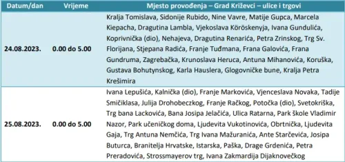 Tretman dezinsekcije će se provesti toplim zamagljivanjem s vozila u pokretu, u noćnim i ranim jutarnjim satima, između 0.00 – 5.00 sati, prvi dan u južnom dijelu grada, a sljedeći dan u sjevernom dijelu grada Križevci.