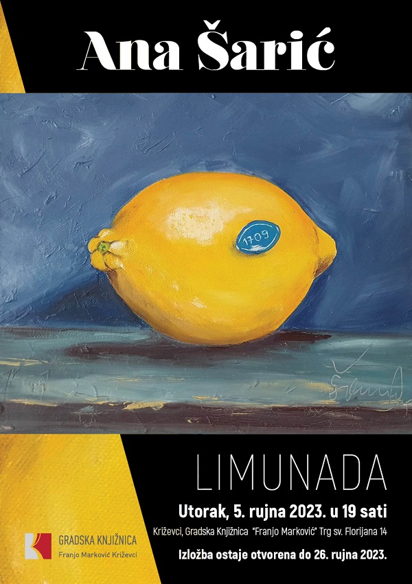 U utorak 5. rujna 2023. s početkom u 19 sati održat će se otvorenje samostalne izložbe slika Limunada – autorice Ane Šarić u Gradskoj knjižnici “Franjo Marković”.