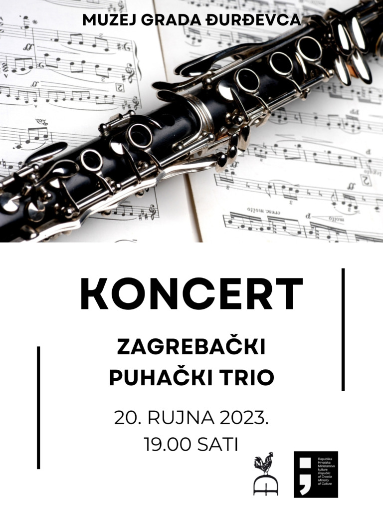 Za ljubitelje klasične glazbe Muzej Grada Đurđevca organizirao je koncert Zagrebačkog puhačkog trija koji će se održati u srijedu, 20. rujna 2023. s početkom u 19:00 sati u velikom salonu muzeja.