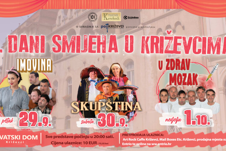 Kerekesh Teatar, Križevčanima već dobro poznatom manifestacijom “Dani smijeha”, ponovo će oduševiti sve ljubitelje građanskih komedija i Prigorce svih dobnih skupina.
