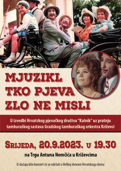 Isječke slavnog filma “prekidat” će članovi Hrvatskog pjevačkog društva “Kalnik” i Gradskog tamburaškog orkestra Križevci sa sopranisticom Dunjom Rebić izvodeći pjesme koje su sastavni dio ovog remek djela Kreše Golika.
